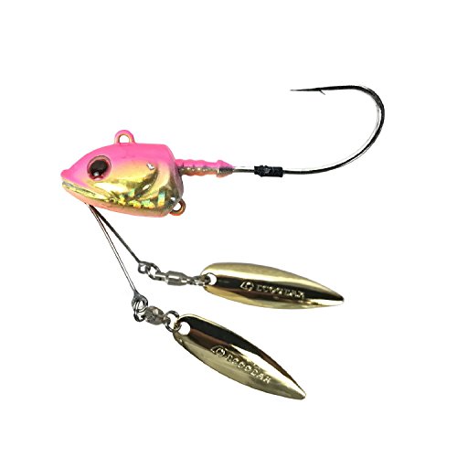 エコギア コールアップヘッド(30g)と熱砂 グランデシャッド(4インチ)を使います。シャッドテールとブレードの組み合わせがよいです。