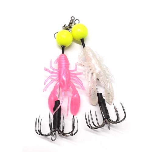 私は、エギを2個付けることができるサルカンに、デビルクラッカー(アンブレラフック2個)とエギ1個を付けてよく釣ります。(上の写真参照)